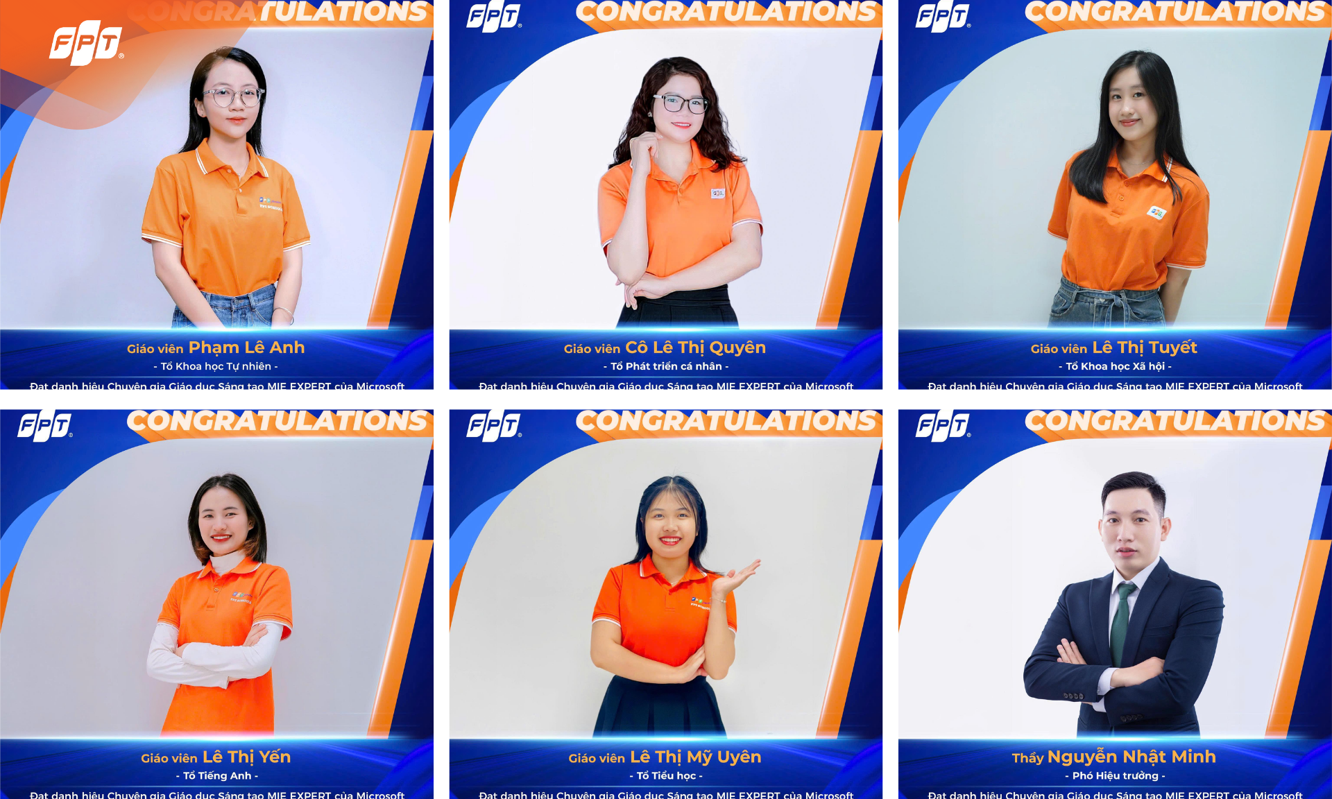 Trong năm học 2025–2026, FPT School Thanh Hoá tự hào khi có 11 thầy cô giáo xuất sắc được Microsoft công nhận là Chuyên gia Giáo dục Sáng tạo (Microsoft Innovative Educator Expert – MIE Expert). Đây là danh hiệu uy tín dành cho những nhà giáo có niềm đam mê ứng dụng công nghệ trong giảng dạy, góp phần đưa giáo dục tiến gần hơn với xu hướng toàn cầu.