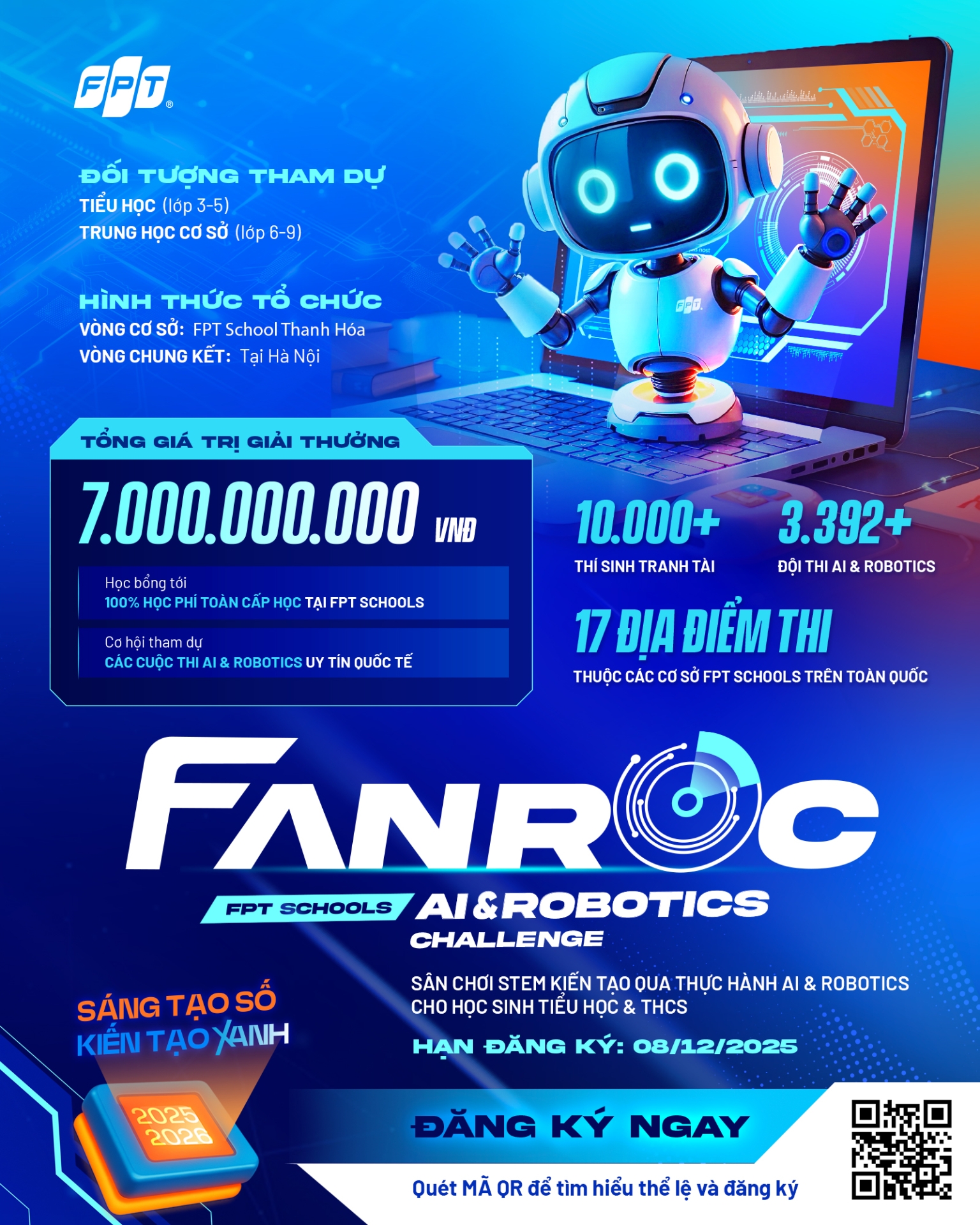 - Tháng 12/2025 - 01/2026: Vòng thi AI tại các cơ sở FPT Schools toàn quốc