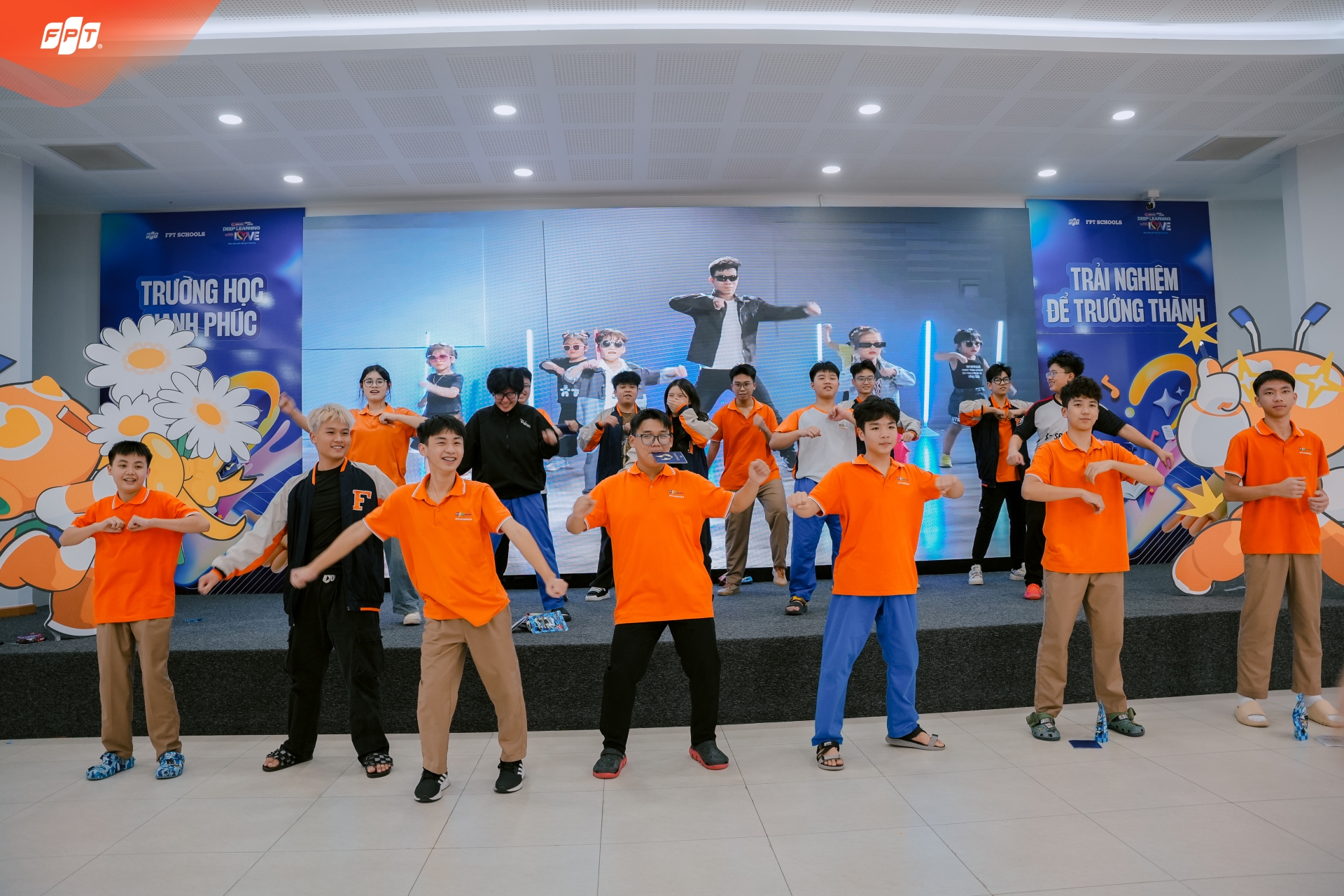 Không chỉ giao tiếp, EngFest còn trở nên sôi động hơn khi các Fschoolers “cháy hết mình” với những màn freestyle dance trên nền nhạc tiếng Anh. Mỗi động tác, mỗi khoảnh khắc đều góp phần tạo nên một sân chơi trẻ trung, hiện đại và đúng chất FPT Schools: năng động – tự tin – sáng tạo.