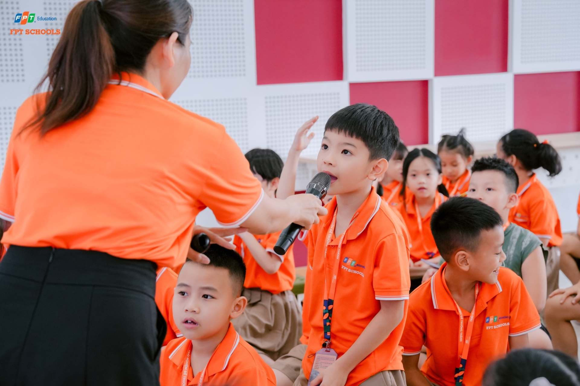 Trong nội dung này, cấp Tiểu học đã được trò chuyện cùng cô Nguyễn Thị Huế - Đầu mối chuyên môn Tổ Phát triển cá nhân. Lồng ghép bài học vào các trò chơi thú vị, sinh động, cô Huế đã khơi gợi niềm vui trong học tập và giúp các con ghi nhớ nhanh chóng 5 nét văn hóa ứng xử của học sinh FSchool: văn hóa chào hỏi, văn hóa xếp hàng, văn hóa gọn gàng, văn hóa tiết kiệm và văn hóa tham dự hội thảo.
