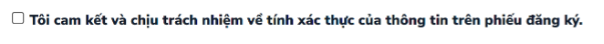 - Sau đó tích vào ô “Tôi cam kết và chịu trách nhiệm về tính xác thực của thông tin trên phiếu đăng ký.” và gửi đăng ký cho nhà trường.
