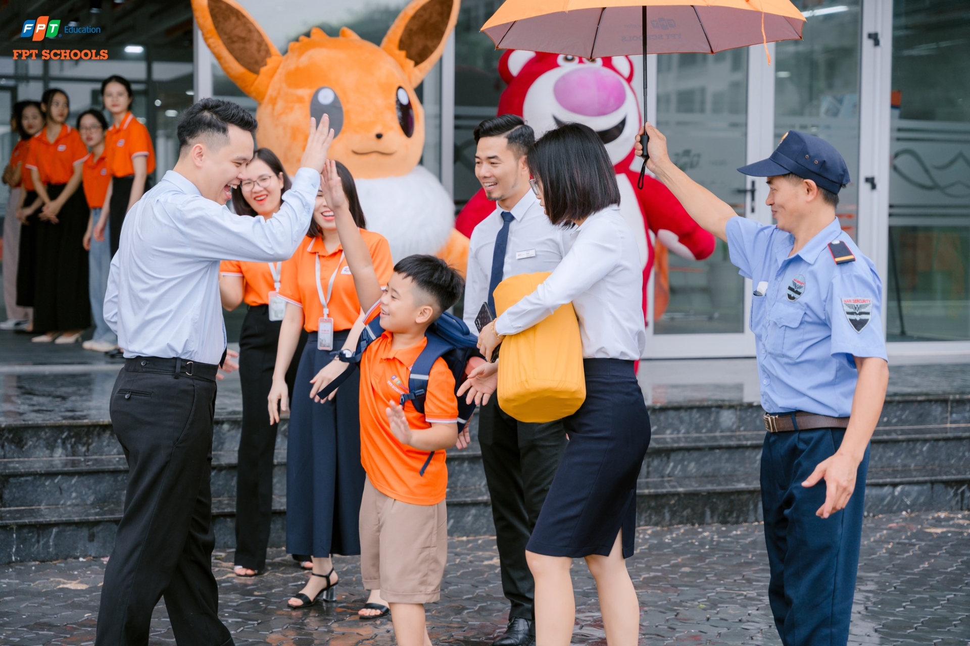 Ngày đầu tới trường, các con được thầy cô trường F nồng nhiệt chào đón.Tiếng vỗ tay hân hoan, sự ngộ nghĩnh của các bạn mascot cùng nhiều hoạt động sôi nổi đã giúp các con nhanh chóng làm quen và đỡ bỡ ngỡ khi bước vào môi trường học tập mới.