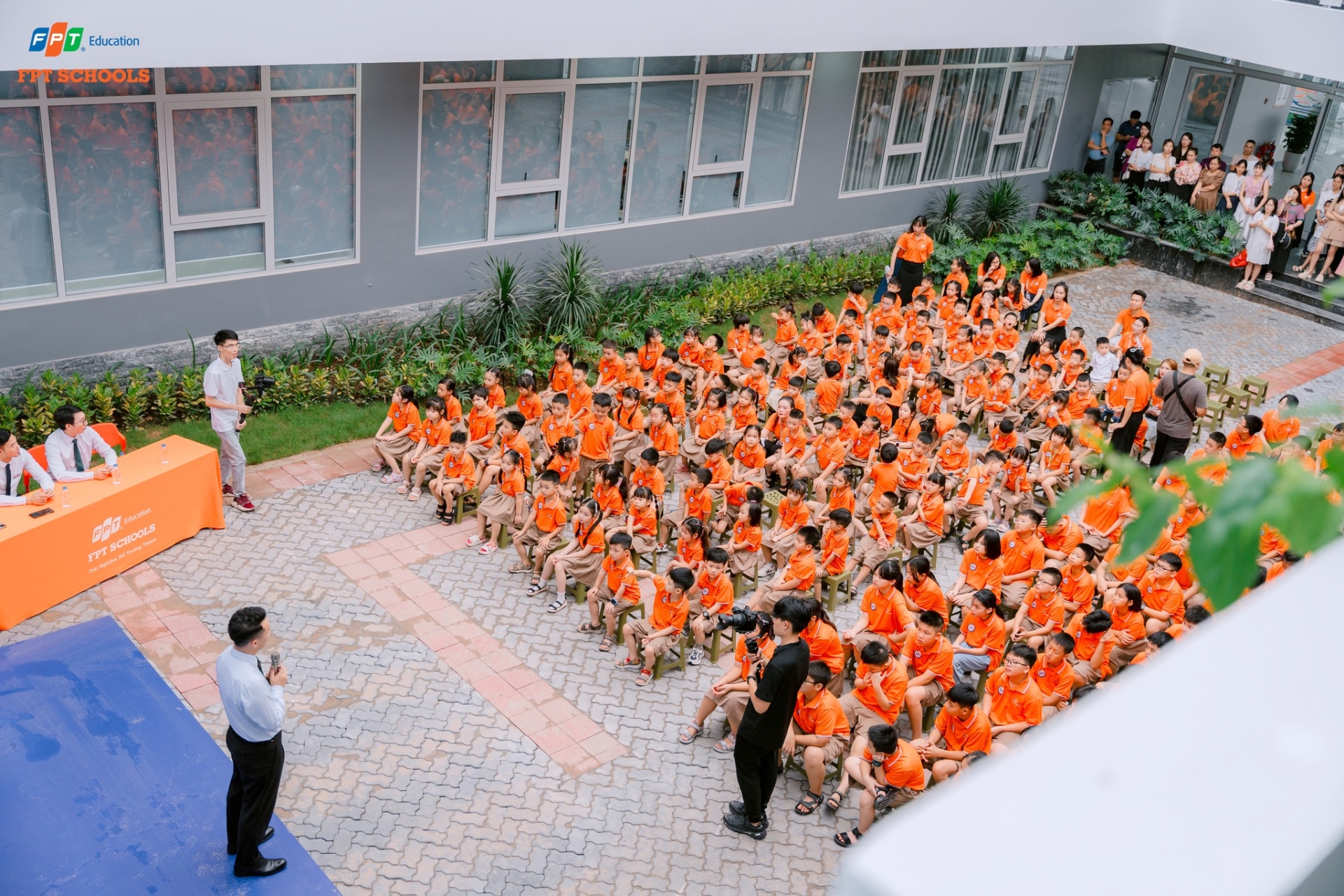 Lễ tựu trường diễn ra trong không khí trang trọng và đầy ý nghĩa với sự tham dự của thầy Vũ Hồng Quân - Hiệu trưởng Trường Tiểu học, THCS và THPT FPT Thanh Hóa, thầy Nguyễn Nhật Minh - Phó Hiệu trưởng, thầy Đỗ Kinh Kha - Trưởng ban Đảm bảo, các thầy cô giáo cùng toàn bộ học sinh khóa 1 và các bậc phụ huynh.