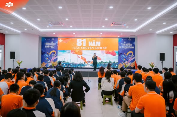 Một trong những phút giây xúc động nhất chính là khi tất cả học sinh Nhà F cùng bước lên sân khấu, hòa giọng với các cựu chiến binh hát vang bài hát “Như có Bác Hồ trong ngày vui đại thắng”. Khoảnh khắc ấy, cả hội trường bừng lên bầu không khí hân hoan và đầy nhiệt huyết.